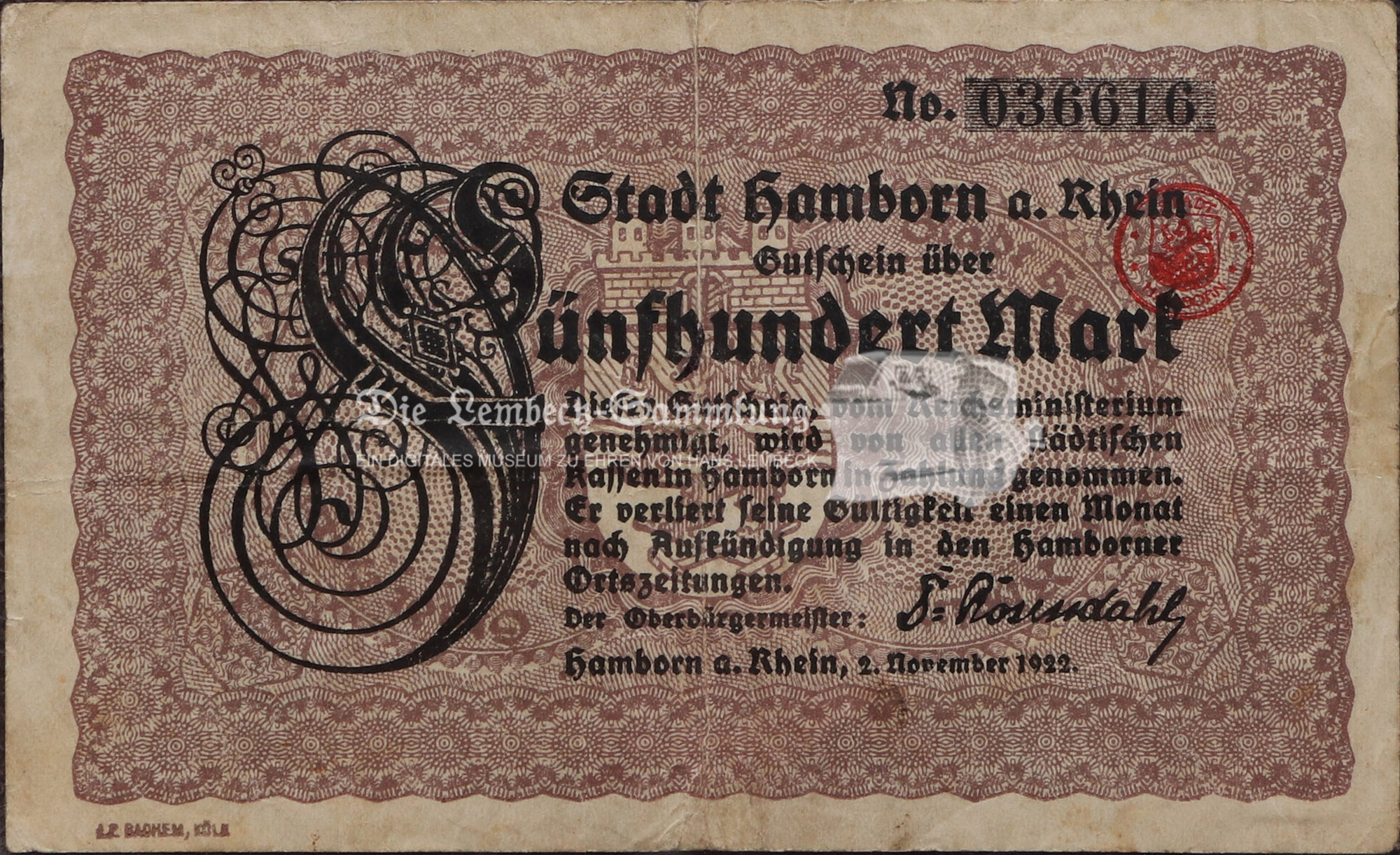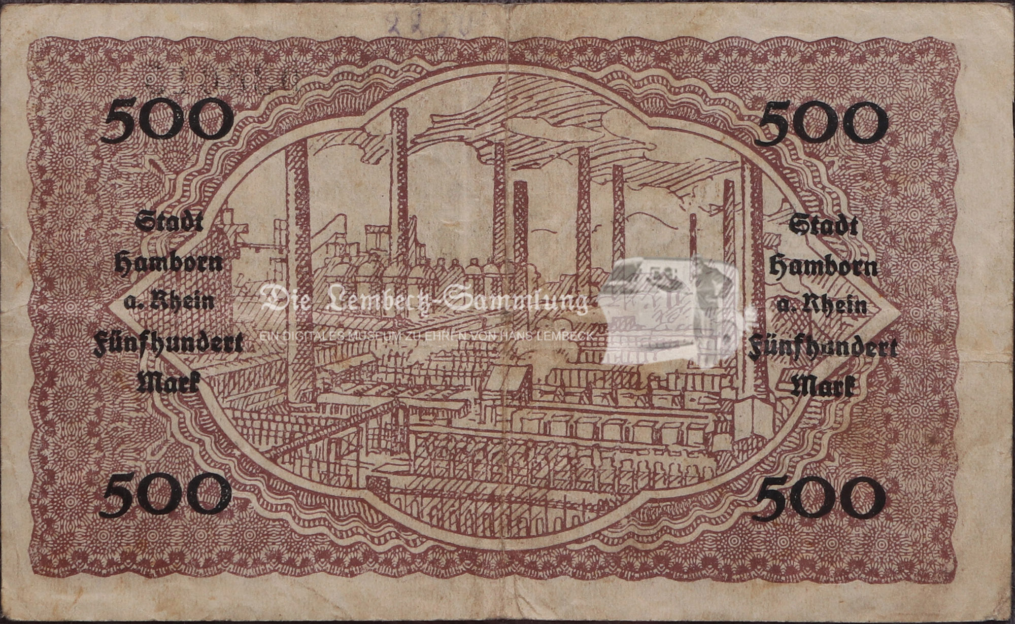 Notgeld Hamborn a. Rhein Gutschein 500 Mark