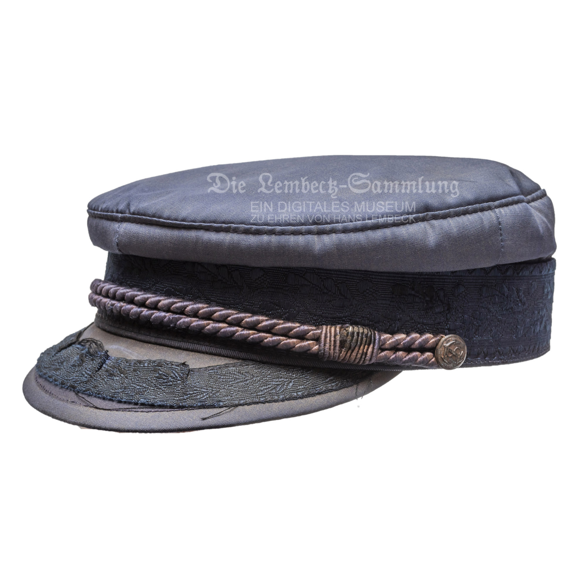 Prinz-Heinrich-Mütze des Hans Lembeck, vermutlich wegen der Erinnerungen an seine Dienstzeit in der Marine und dem Zusammenhang des Mützentyps mit der Marine aufbewahrt.